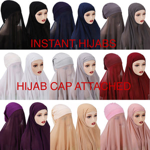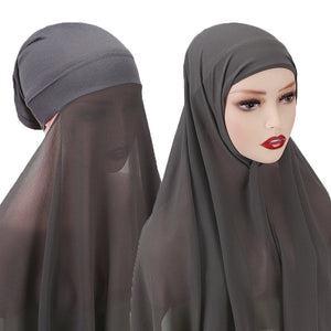 2 in 1 Instant Chiffon Hijab Scarf With Inner Cap One Piece for Ladies Girls Women