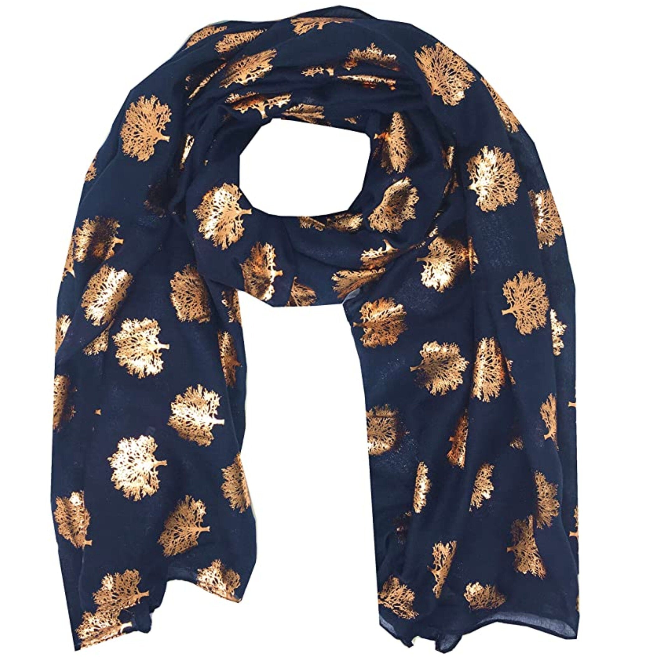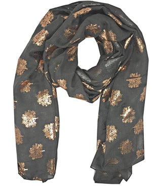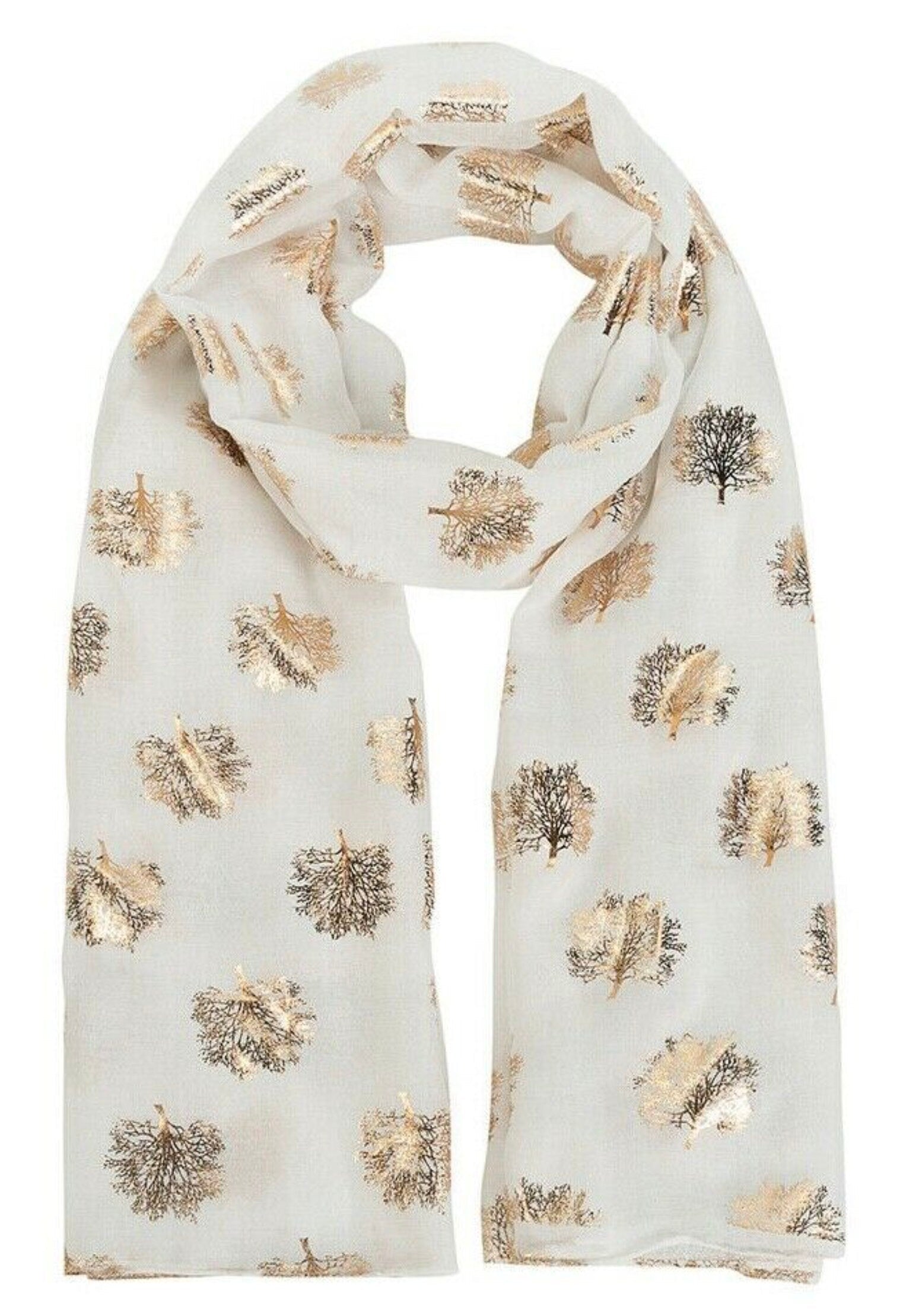 Elegant Oak Tree Scarf with Gold Metallic Foil Print Classy Ritzy Scarves Wrap Shawl Ideal Gift