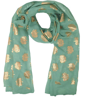 Beautiful Scarf with Gold Foil Print Oak Tree. Soft and warm. Perfect for casual and formal wear. Looks great under light, indoors and outdoors. Large size. Material: 100% Viscose.