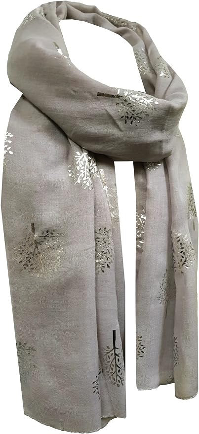 Elegant Silver Mulberry Tree Scarf with Silver Metallic Foil Print Classy Ritzy Scarves Wrap Shawl Ideal Gift
