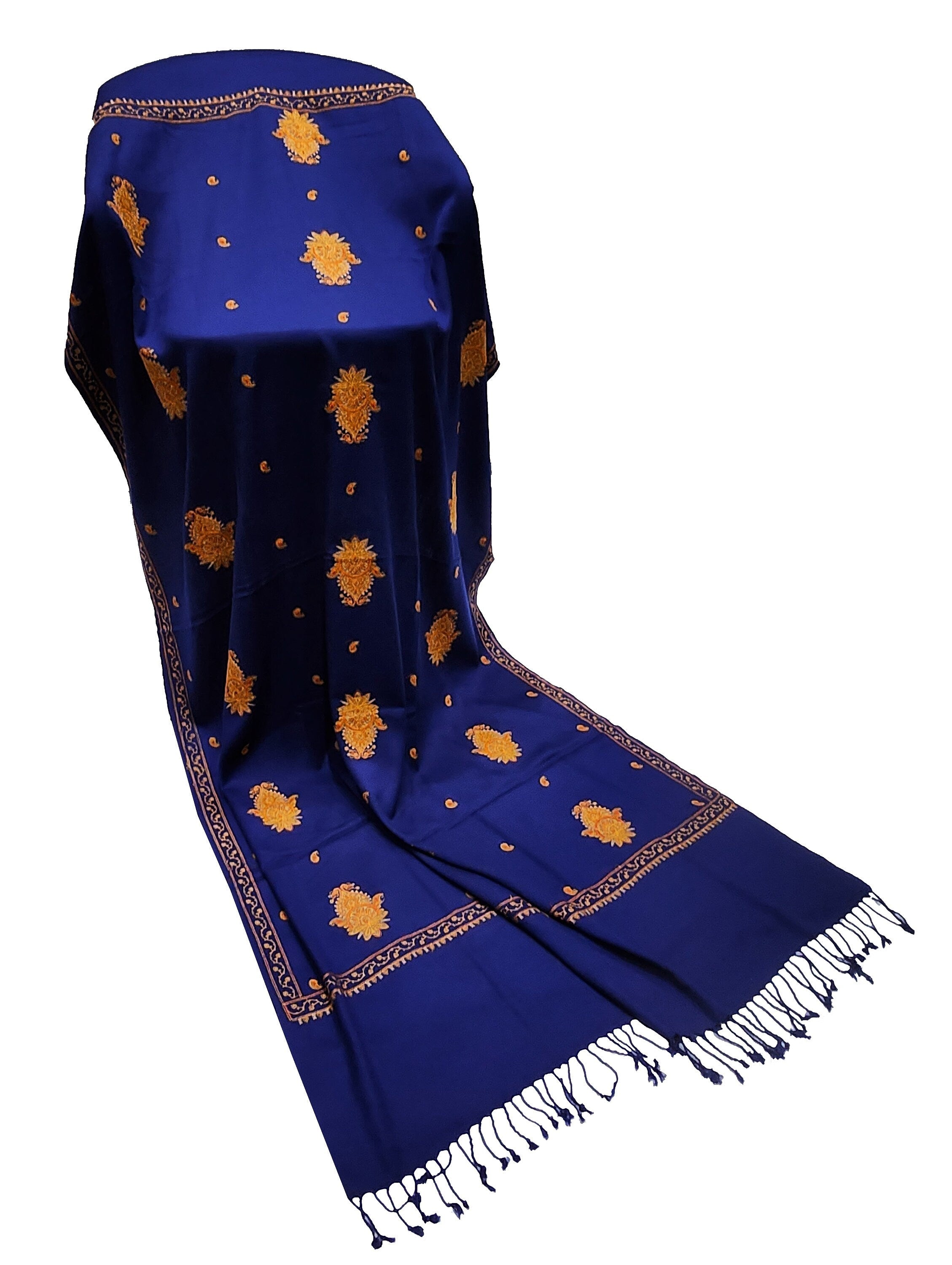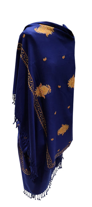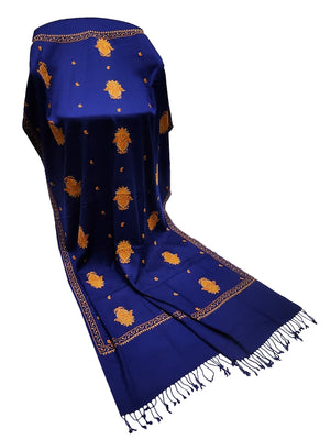 Exclusive Navy Blue and Rust Orange Hand Embroidered Luxury Shawl Wrap Scarf - Only 1 Available in this Design and Colour - Hurry !