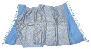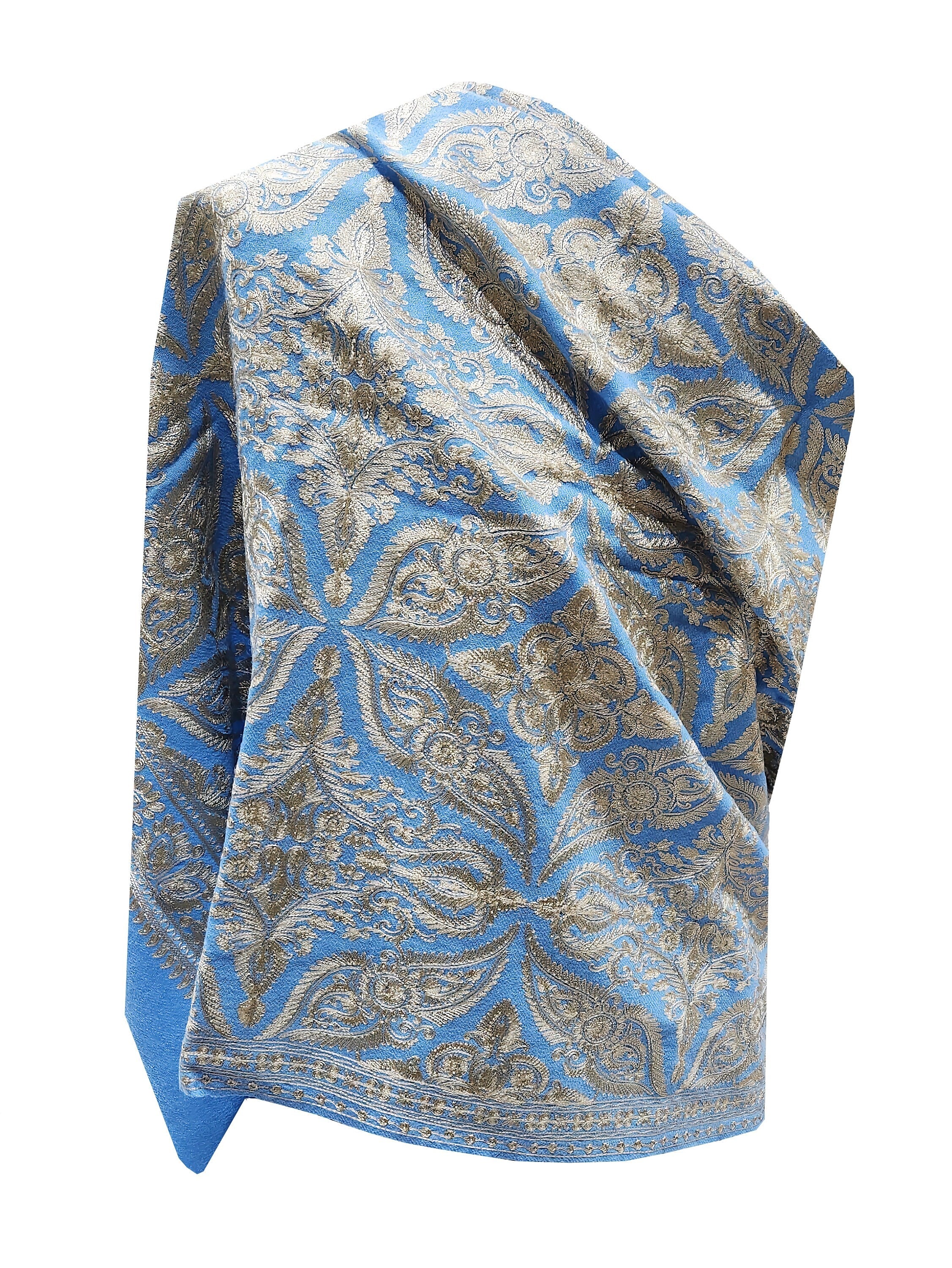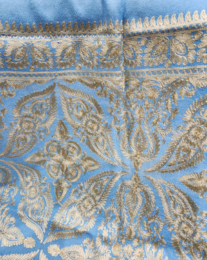 Exclusive Sky Baby Blue and Gold Hand Embroidered Luxury Shawl Wrap - Only 1 Available in this Design and Colour - Hurry !