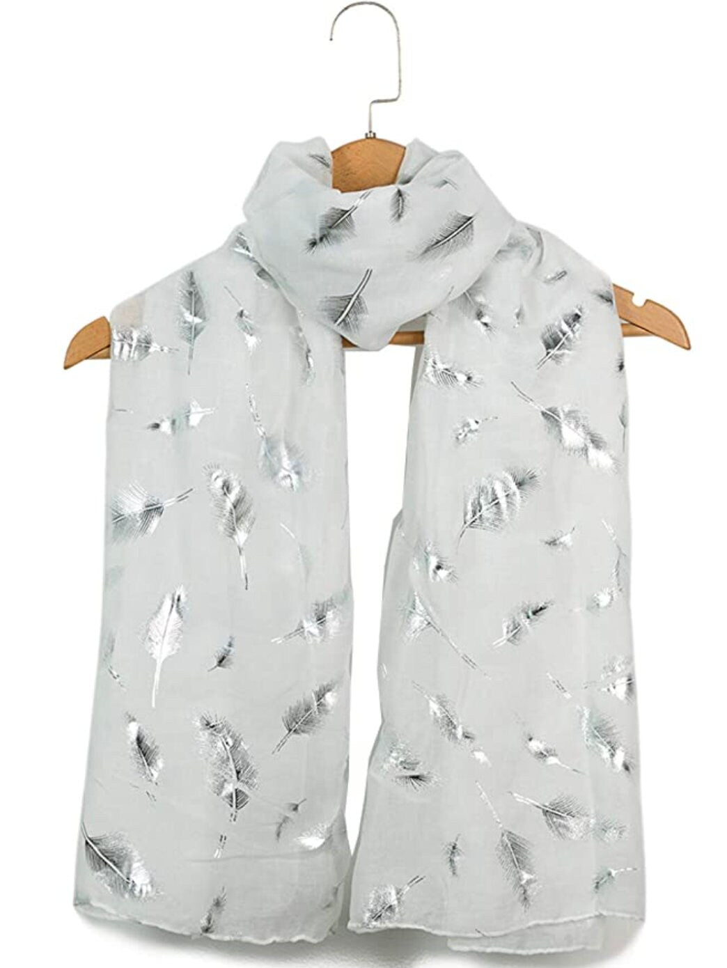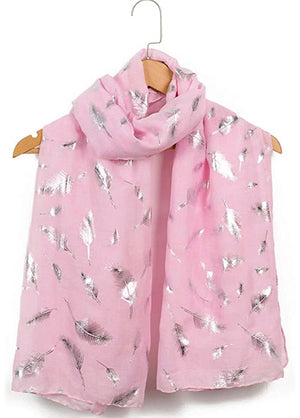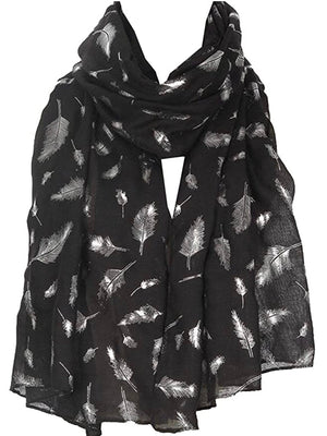 Feather Scarf with SILVER Metallic Foil Print Classy Scarves Wrap Shawl Gift