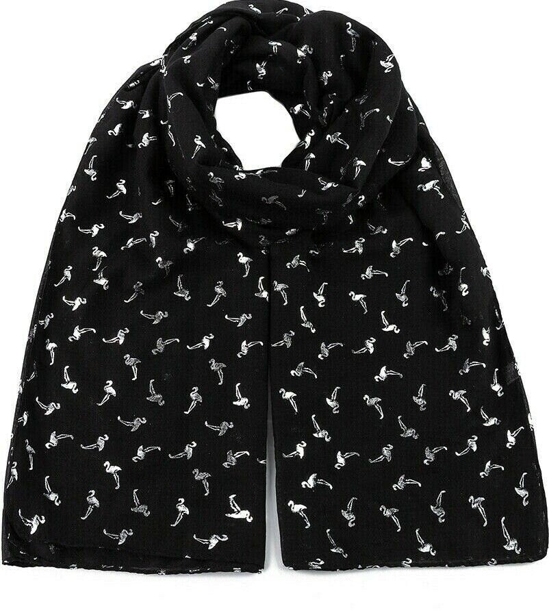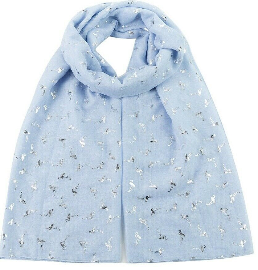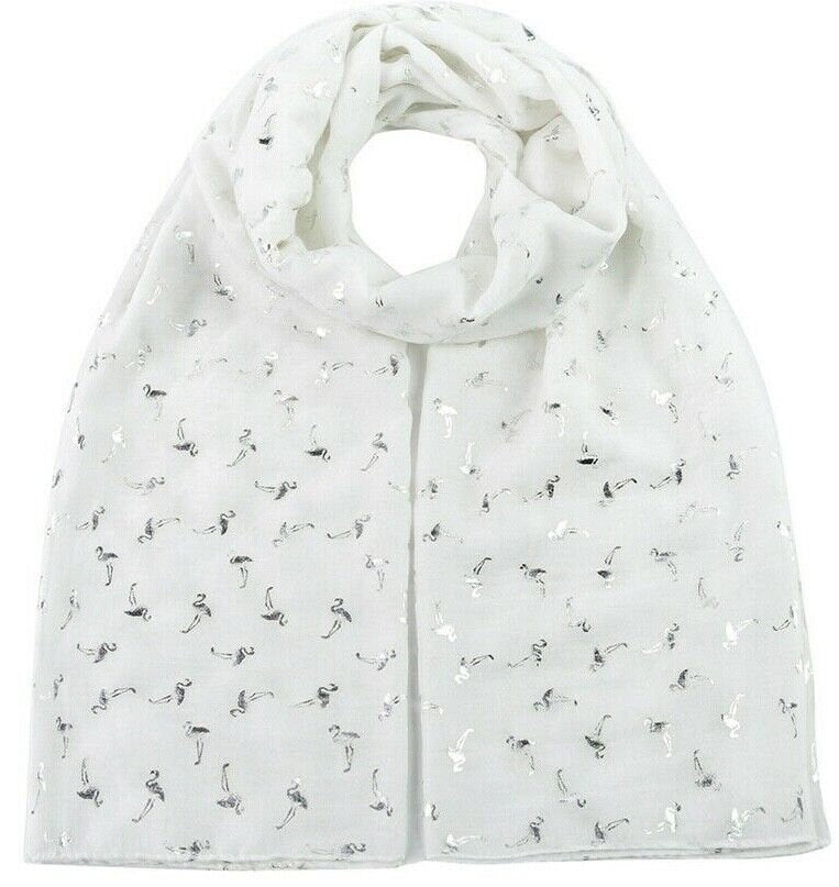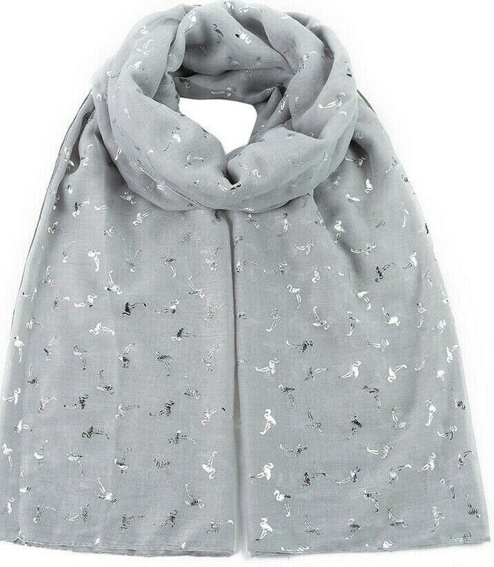 Flamingo Birds Glitter Foil Print Large Scarf Wrap