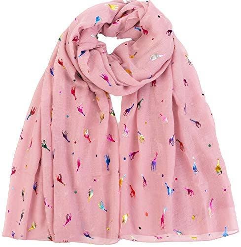 Giraffe Animal Print Women's Scarf Shawl Wrap By World of Scarfs (Glitter Giraffe Dusky Pink)