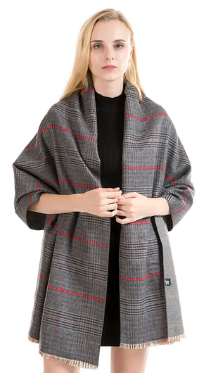Grey NEW Classic Reversible Plaid Tartan Look Scarf Wrap Blanket Shawl Warm Soft Cosy UNISEX