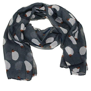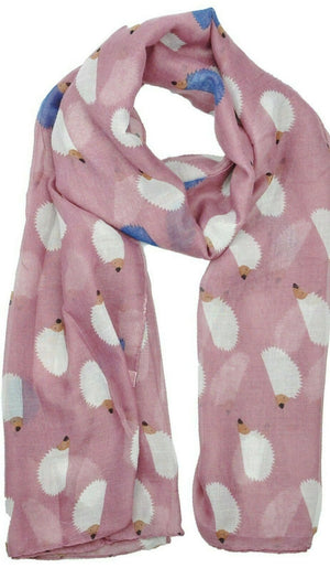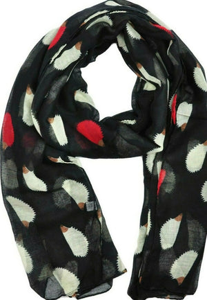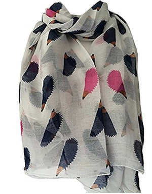 Hedgehog Print Scarf Available in Navy, Black, Dusty Pink, White, and Grey Colours.