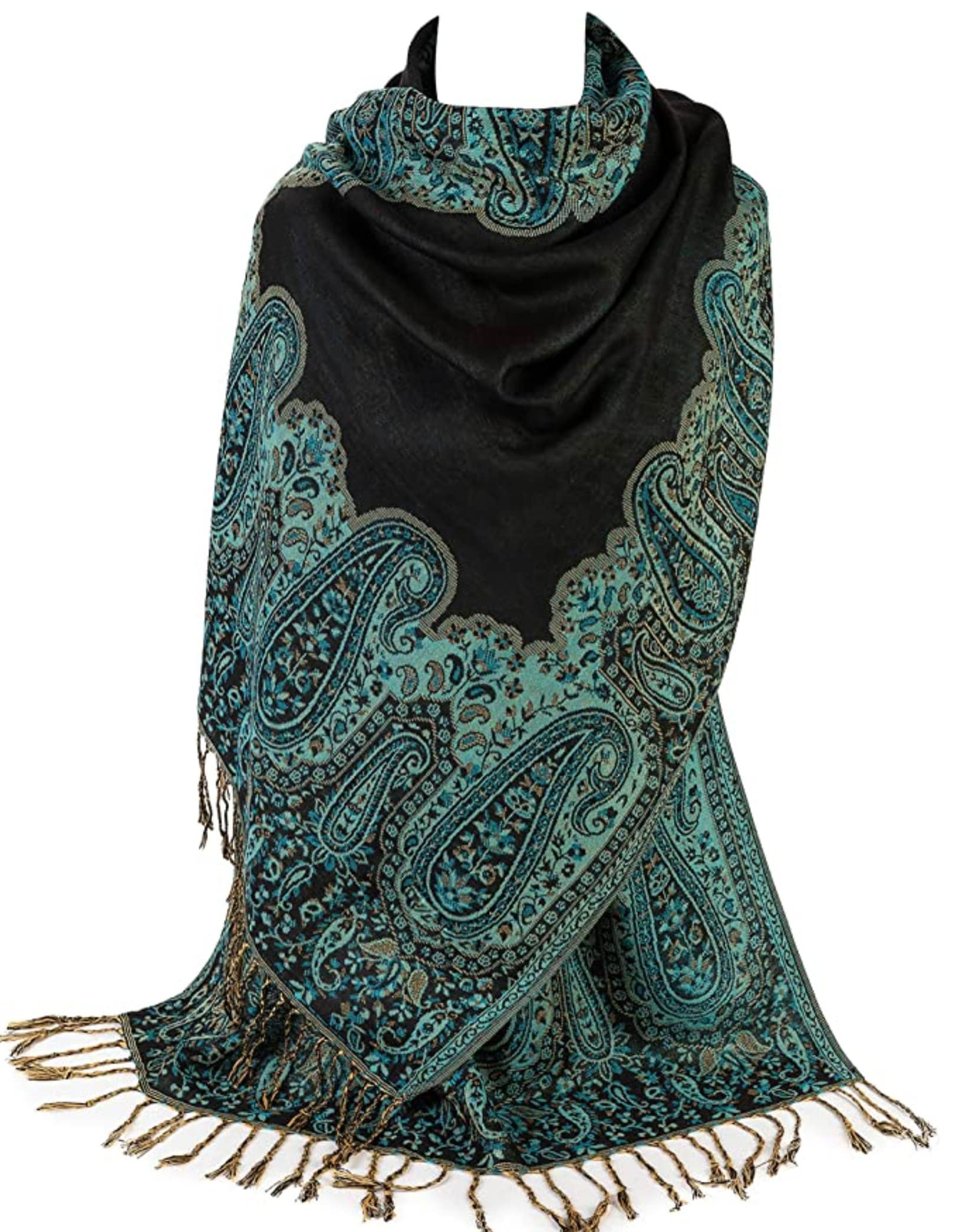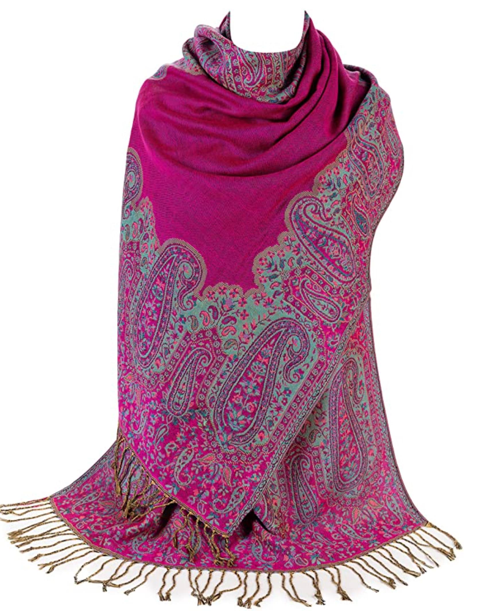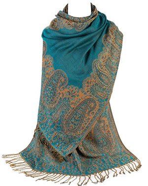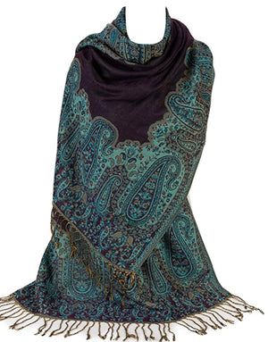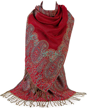 Ladies Paisley Bordered Pashmina Feel Shawl Scarf Wrap Luxuriously Warm Soft Vibrant
