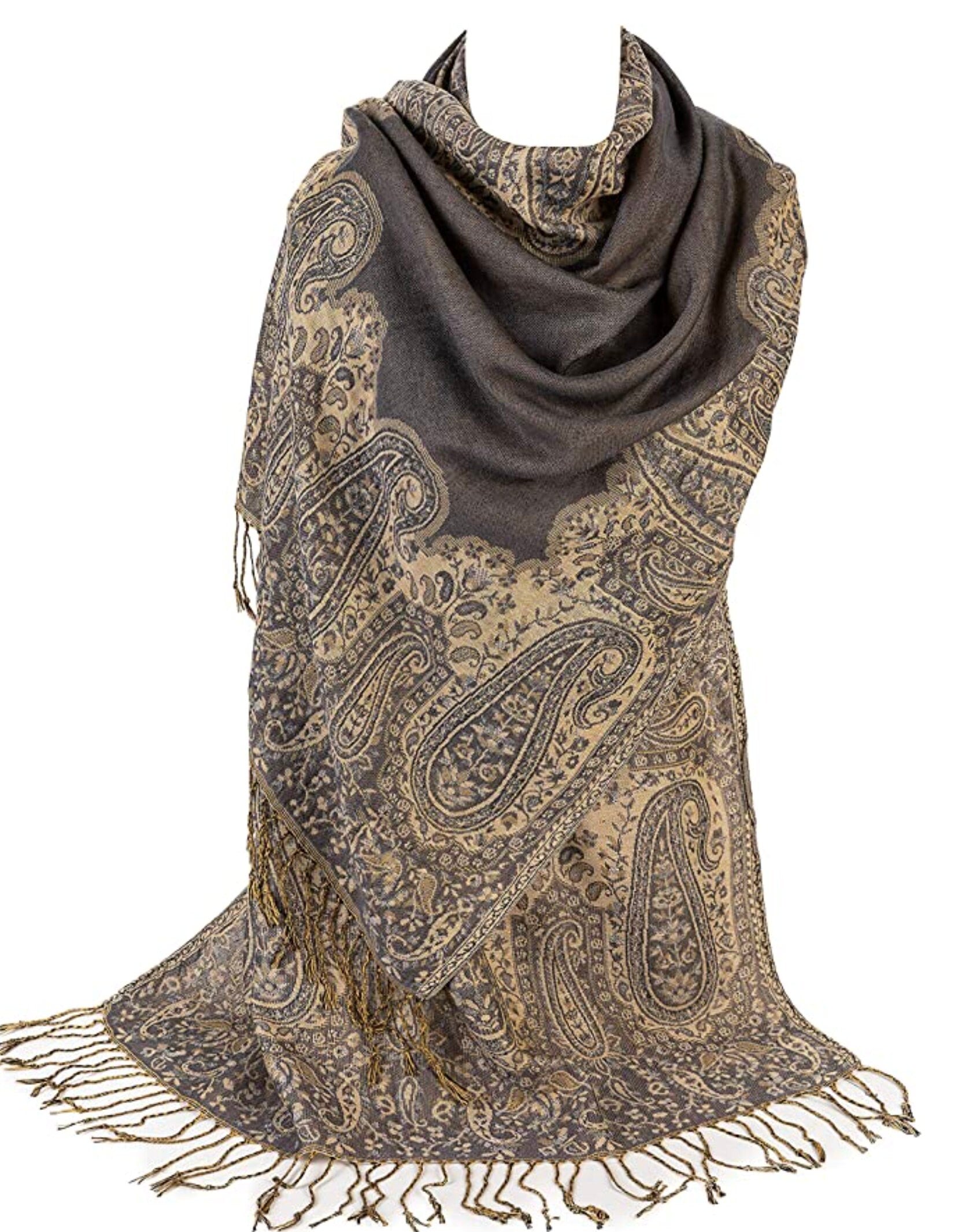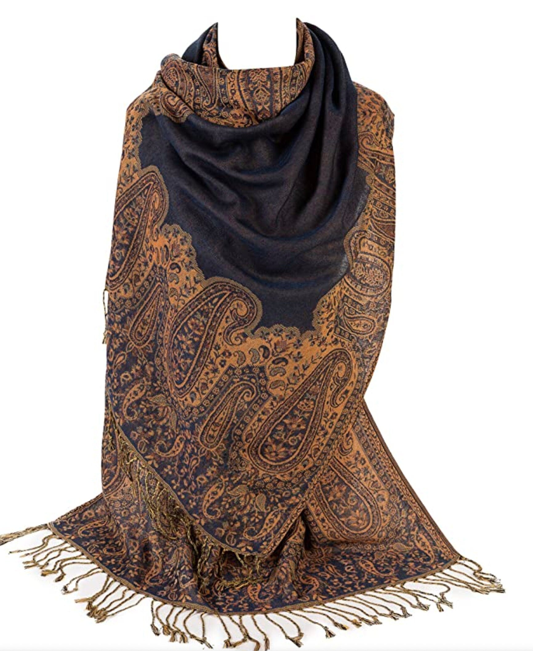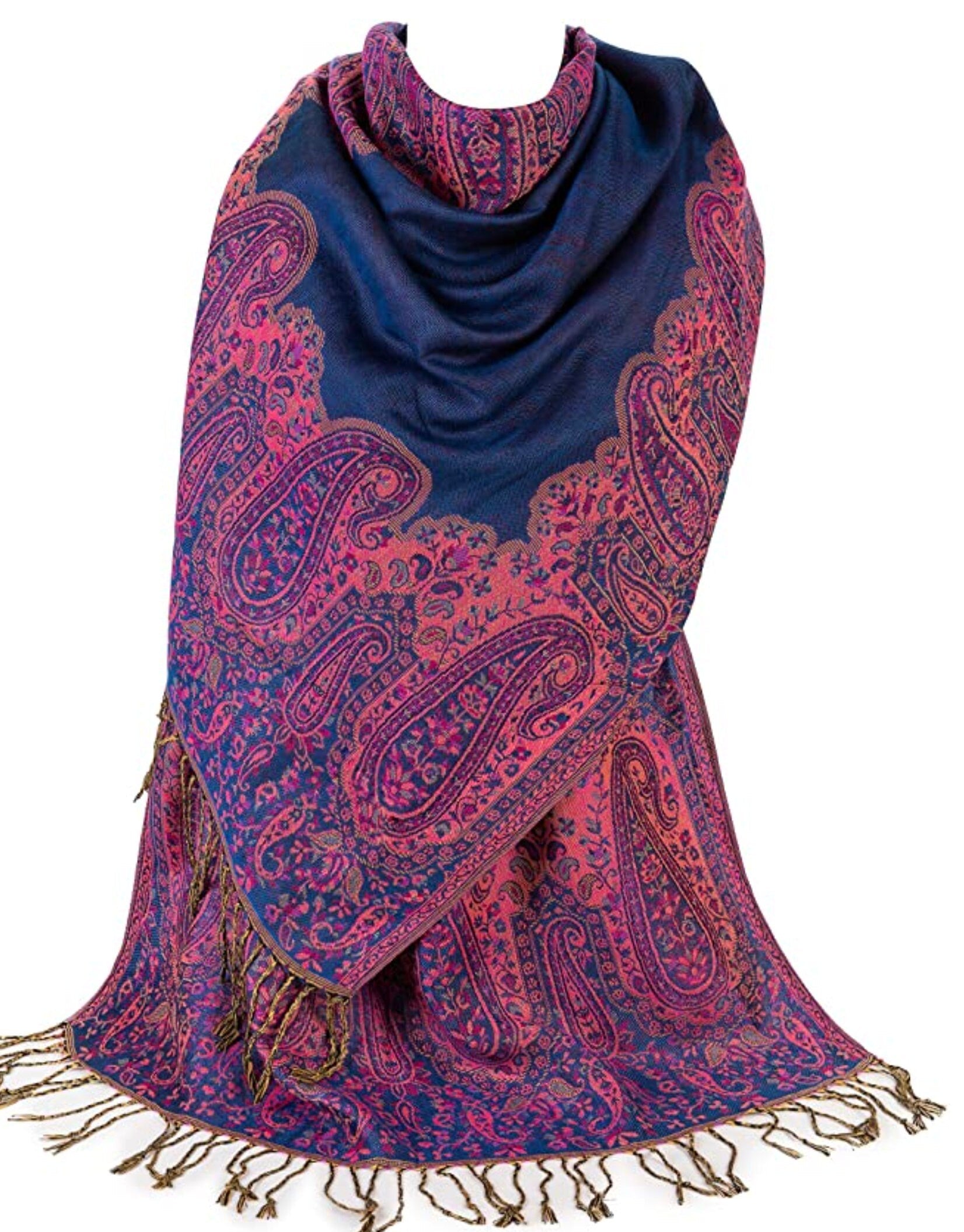 Ladies Paisley Bordered Pashmina Feel Shawl Scarf Wrap Luxuriously Warm Soft Vibrant