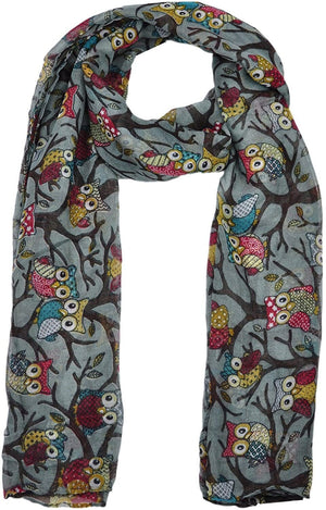 Ladies Women's Owl on Branch Print Scarf Wraps Shawl Maxi Soft Scarves