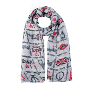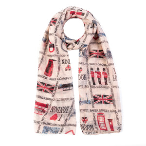 Union Jack Scarf 100% Viscose Machine WashLondon Attractions Printed100% viscose, approximate dimensions: 180cm x 90cmOversized, Wrap it in Multiple Style Machine Washable`