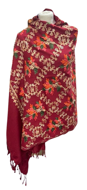 Maroon Stunning Kashmiri Master Craftsman Hand Embroidered Luxury Shawl Wrap Scarf