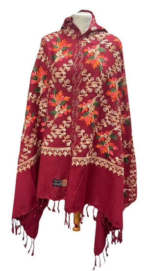 Hand Embroidery, Brilliant Colours and Extremely Neat CraftsmanshipMaroon This Stunning Hand Embroidered Is a Beautiful Example of Kashmiri Master Craftsmanship.Dry Clean OnlyFastening: Shawl, Scarf, Wrap, ShawlGreat For Those Chilly Days/Evenings Or Parties/Occasions Wear