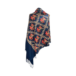 Navy Blue Stunning Kashmiri Master Craftsman Hand Embroidered Luxury Shawl Wrap Scarf