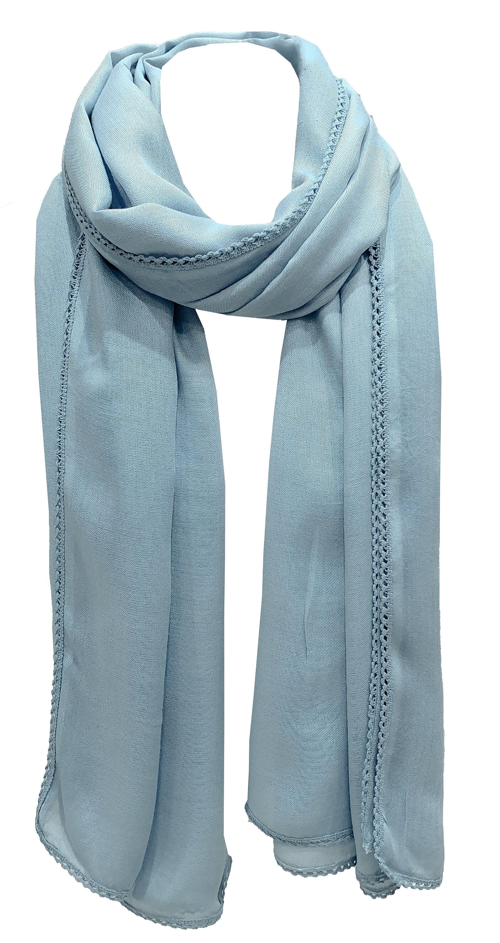 Plain with Delicate Lace Crochet Border Scarf Scarves Maxi Wrap