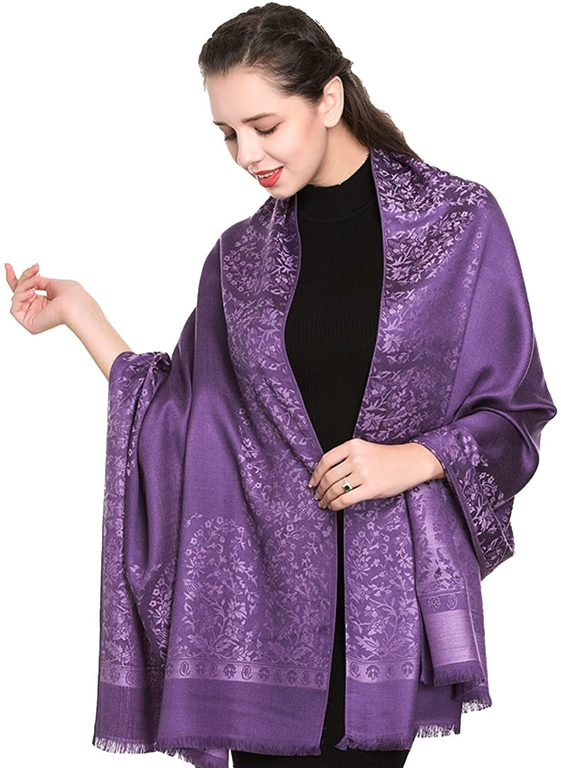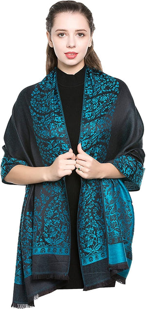 Reversible/Two Sided Print Self Embossed Pashmina Feel Wrap Scarf Stole Scarves Shawl