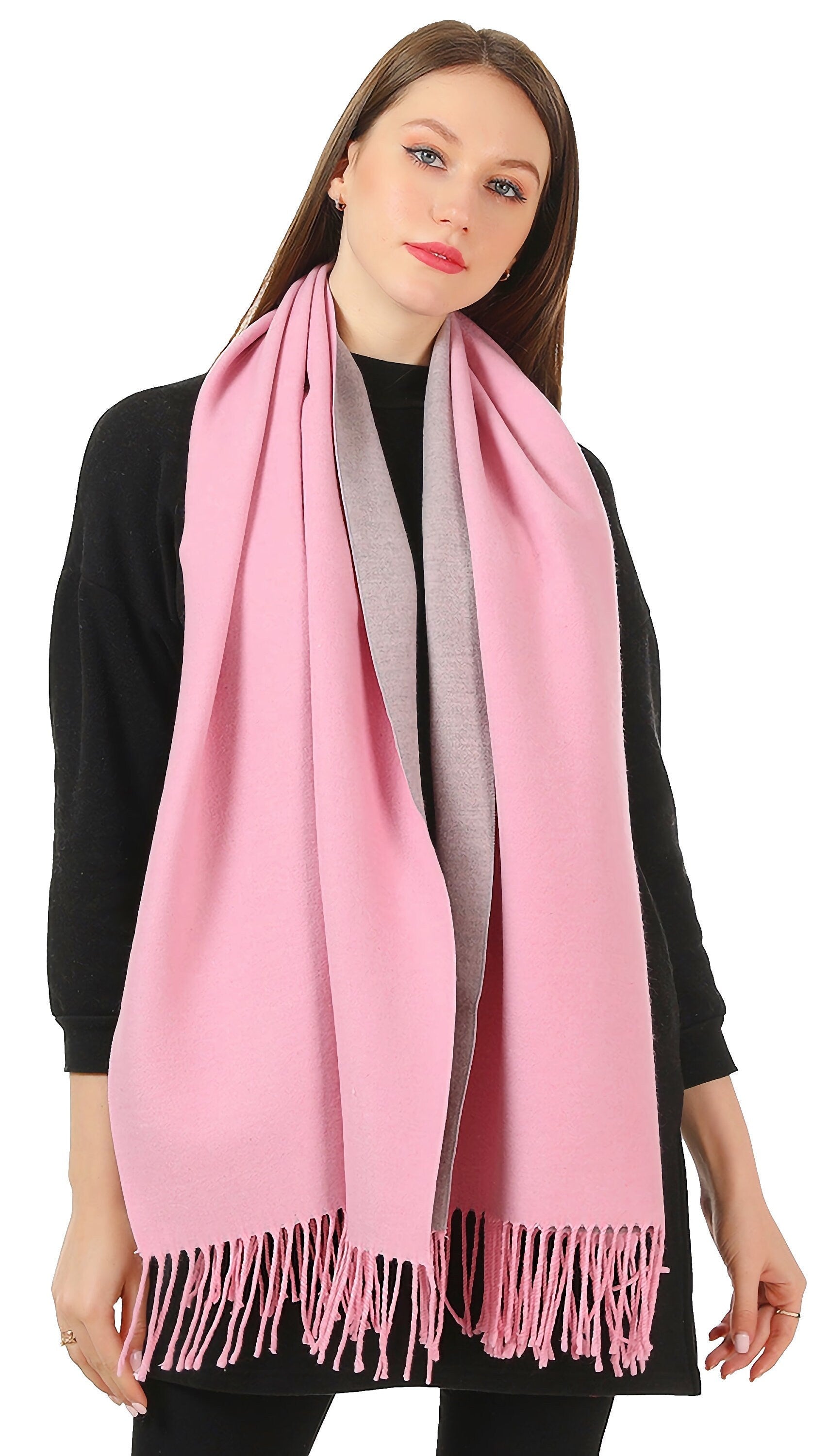 Reversible Winter Scarf Wrap Blanket Shawl Warm Soft Cosy - Baby Pink/Light Silver