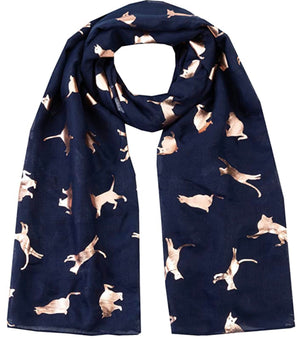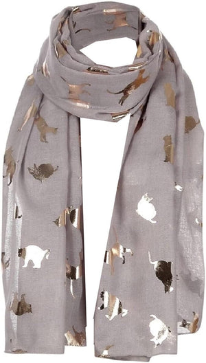 Rose Gold Moonlight Cat Print Glitter Foil Sparkle Scarf Scarves