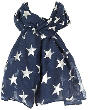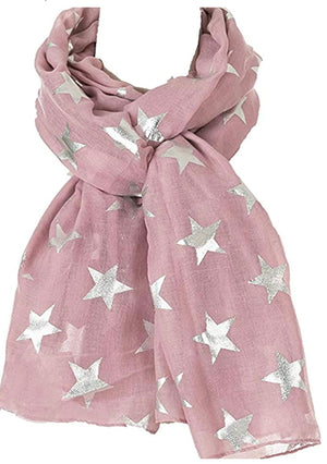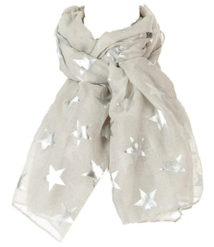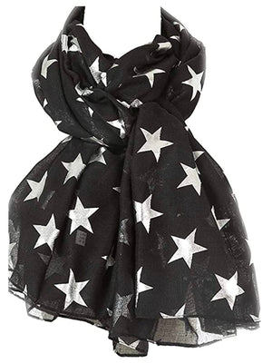 Scarf with SILVER Star Metallic Foil Print Classy Ritzy Scarves Wrap Shawl Ideal Gift
