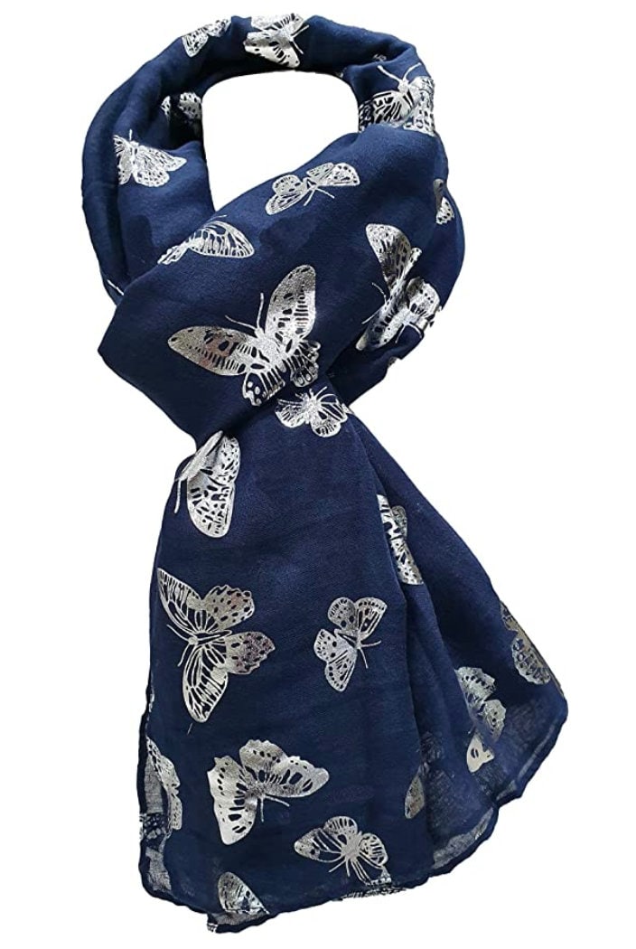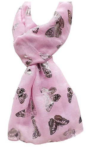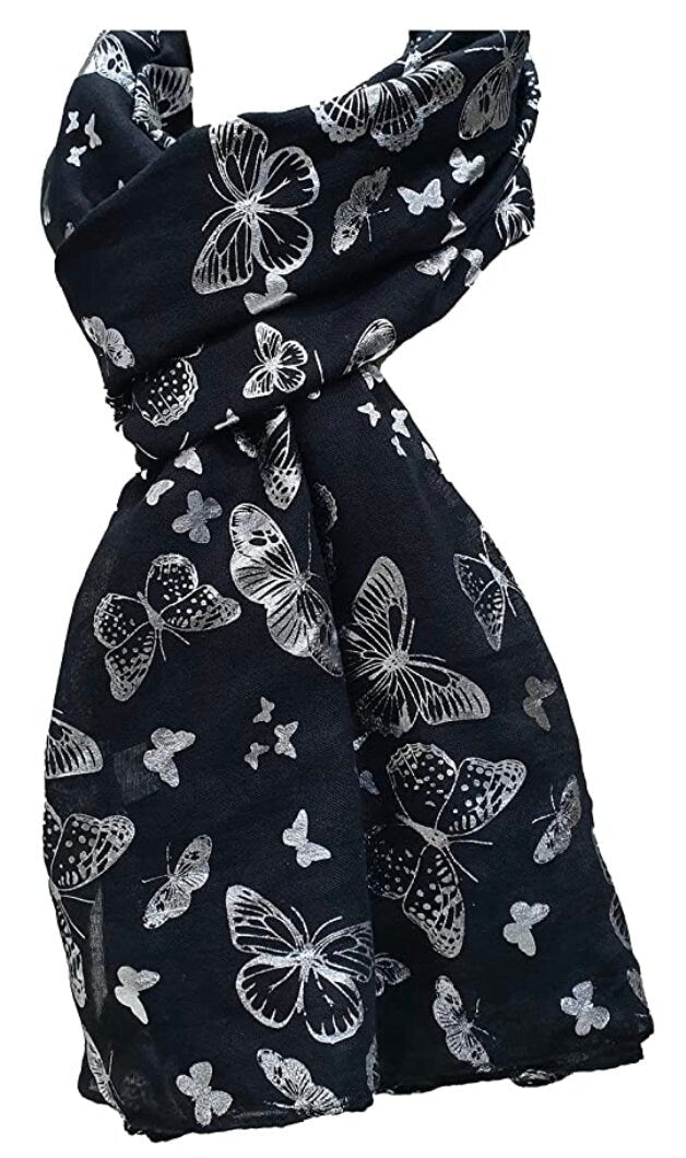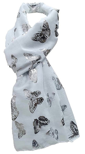 Silver Foil Butterfly Print Ladies Celebrity Style Scarves Maxi, Scarf, Wrap, Sarong, shawls Gift