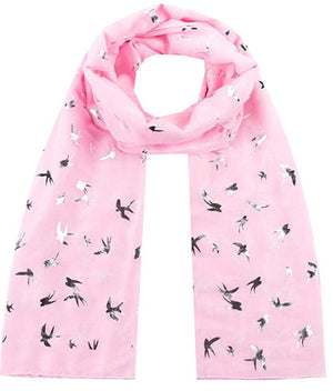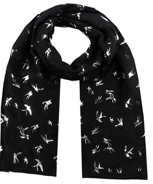 Silver Foil Swallow Bird Print Scarves Scarf Wrap Shawl for Women Ladies Girls