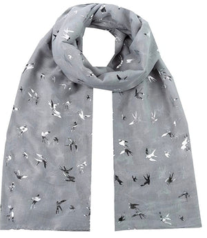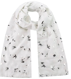 Gorgeous Silver Foil Swallow Bird Print Scarves Scarf Wrap Shawl for Women Ladies GirlsLovely Gift for your Family, Friend and Coworkers. Perfect for any season, event or occasion!