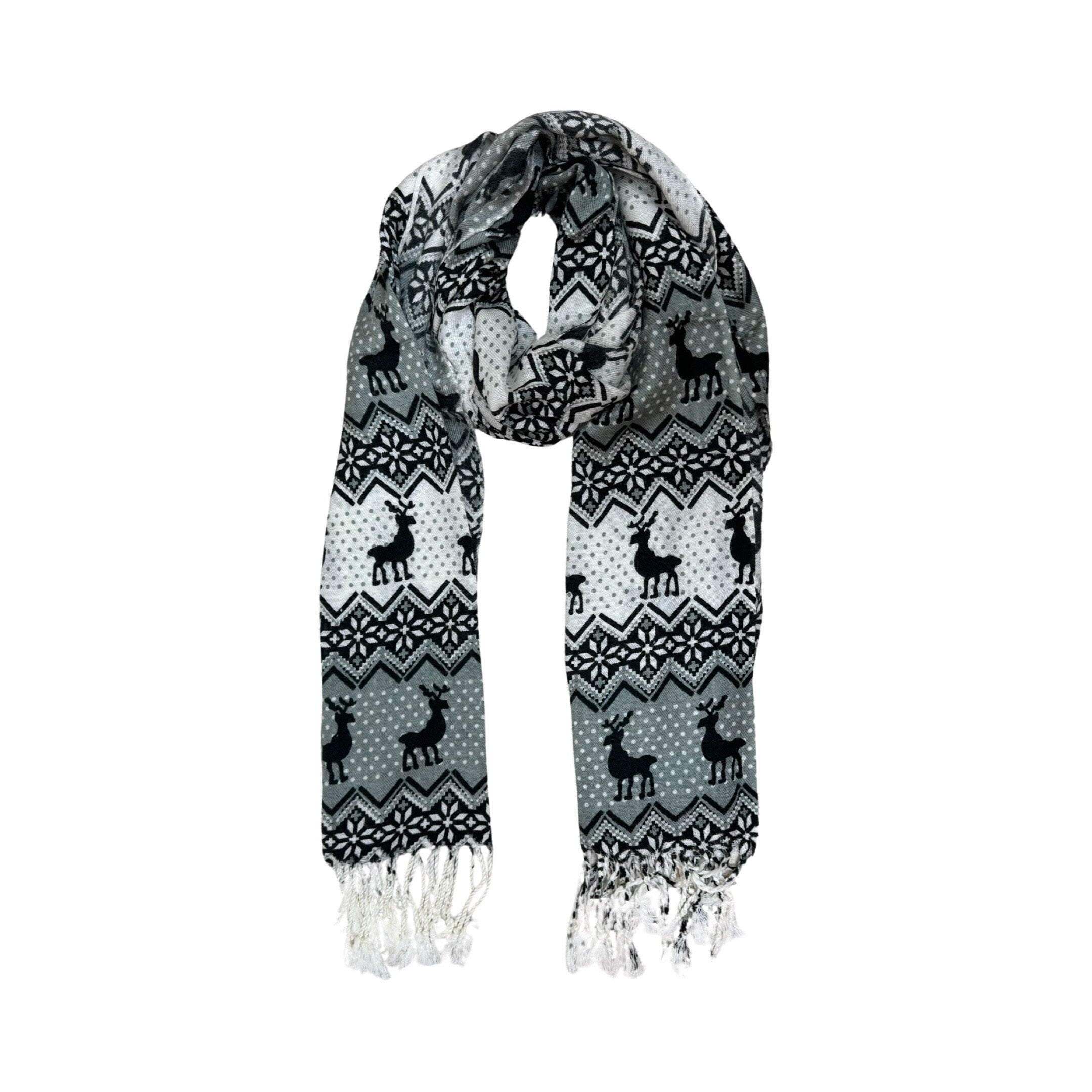 Silver Ladies Scarves Beautiful Reindeer Animal Print Scarf Shawl Wrap