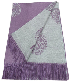 Thick Reversible Mulberry Design Winter Scarf Wrap Blanket Shawl Warm Soft Cosy - LAVENDER / SILVER